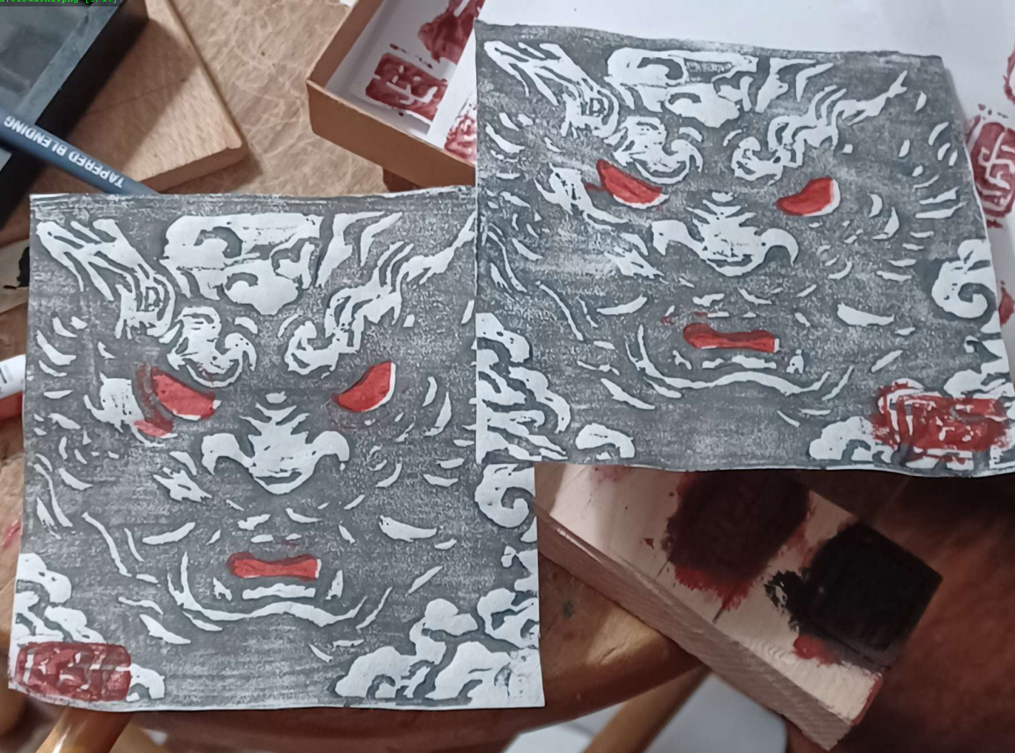 Duo Color, prints pulled from traditional Shoji paper. color placements vary per edition