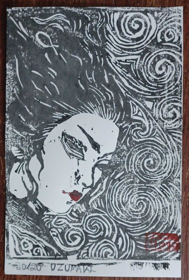 Card stock pull, about a third of the editions feature red lipstick, and each varying ‘tears’ on the face
